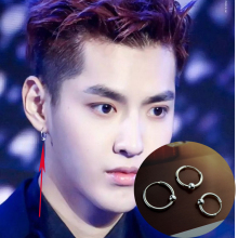 包邮S925纯银情侣GD权志龙吴亦凡艾克里里同款加粗圆圈耳环耳钉