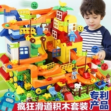 益智玩具积木大颗粒轨道滑珠道益智拼插滚球男女孩3-6-8周岁