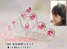 韩国儿童发饰韩单女童头饰品公主粉色钻皇冠发插发梳白水钻王冠75