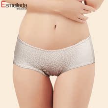 爱丝美拉达 豹纹低腰三角内裤女浅色纯色内裤
