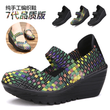 手工编织鞋休闲鞋坡跟广场舞鞋浅口妈妈鞋网面透气老北京布鞋女鞋