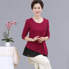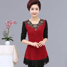 妈妈装长袖秋装蕾丝花边打底衫 中年妇女上衣 中老年女中长款衬衣