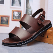 2017新款真皮凉鞋男牛皮沙滩鞋男士休闲凉鞋拖鞋两用父亲凉鞋男