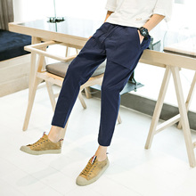 韩版男士休闲裤棉麻纯色宽松九分裤百搭日系小脚哈伦裤潮流男裤子