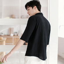 夏季男士短袖t恤日系棉麻修身衬衫亚麻半袖潮流薄款宽松七分中袖
