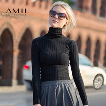艾米AMII女装旗舰店针织薄款打底衫 修身套头高领打底毛衣女春秋