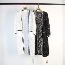 女士打底衫 中长款 印花 蕾丝2017中长款开衫外套