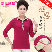 2017春装新款中年女士纯棉t恤妈妈装套头打底衫40-50长袖衫