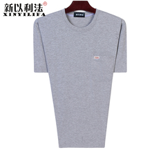 夏季中老年圆领短袖t恤男爸爸装老人宽松休闲大码中年薄款体恤衫