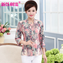 中老年女装夏装中袖上衣修身中年女衬衣长袖衣服夏秋装妈妈装衬衫