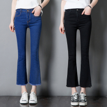 牛仔小嗽叭裤女九分微喇 毛边流苏黑色牛仔裤女春夏季2017新款潮