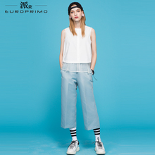 EUROPRIMO/派茉欧洲站纯色简约风质感宽松高腰阔腿裤七分直筒裤