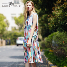 EUROPRIMO/派茉夏季女装真丝连衣裙印花宽松女圆领短袖直身裙长裙