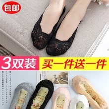 韩国蕾丝短袜夏季浅口防滑冰丝纯棉袜子超薄低帮硅胶船袜隐形袜女