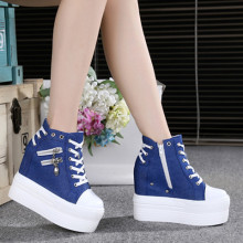 单鞋女厚底高跟韩版休闲英伦拉链2016秋季新品潮帆布内增高跟鞋潮