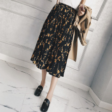 2017夏装新款女装a字裙雪纺长裙百褶花裙子夏季中长款半身裙夏装