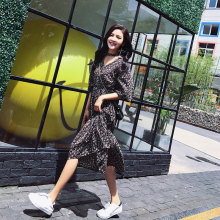 2017夏装新款女装裙子韩版百搭雪纺碎花长裙连衣裙V领鱼尾裙a字裙