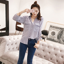 2017春装新款女装条纹长袖衬衫韩版宽松百搭打底春季上衣潮衬衣女
