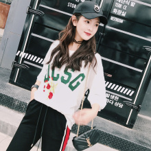 2017夏装新款韩版百搭白色上衣落肩宽松打底衫字母刺绣短袖t恤女