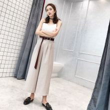 2017春夏季新款韩版阔腿裤女九分高腰宽松直筒系带个性休闲七分裤