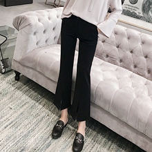 2017春夏新款女装微喇叭九分裤开叉高腰显瘦黑色休闲百搭阔腿裤潮