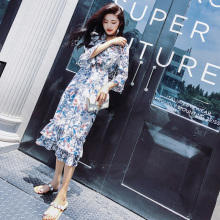 2017夏季新款女装韩版显瘦碎花鱼尾裙子心机雪纺连衣裙小清新长裙