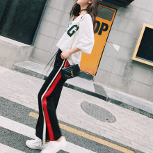 2017夏装新款女装裤子宽松休闲裤开叉直筒裤春夏季薄款校服运动裤