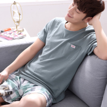 男士睡衣夏季纯棉短袖短裤薄款青年全棉夏天家居服套装运动可外穿