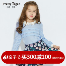 小虎帕蒂儿童女童长袖衬衫童装衬衣中大童娃娃领宝宝雪纺衫潮