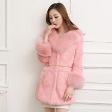 2016秋冬新款 海宁女士狐狸毛领兔毛皮草外套大衣中长款皮草特价