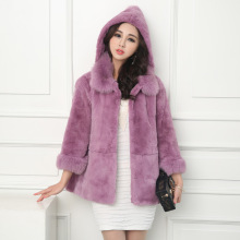 2016秋冬新款整皮兔毛皮草外套连帽中长款女海宁皮草大衣特价