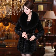 2015新款 狐狸毛领水貂毛皮草外套拼貂中长款女貂皮大衣特价清仓