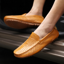 夏季男士真皮豆豆鞋英伦复古休闲鞋时尚镂空透气懒人鞋开车鞋子男