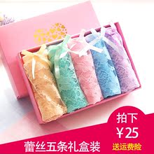 纯棉女士内裤礼盒装可爱蕾丝学生三角裤低腰性感棉质面料大童裤头