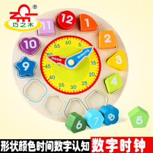QZM木质数字时钟拼图趣味模型儿童益智玩具3-7岁宝宝认识时间