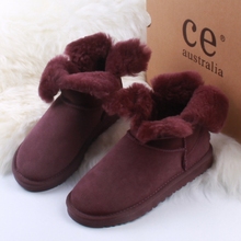ce正品四叶草波浪口羊皮毛一体雪地靴女短靴子棉鞋冬靴保暖葡萄紫