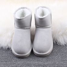 超酷马卡龙正品ce牛皮侧拉链灰色雪地靴女中低筒靴子女士真皮棉鞋