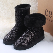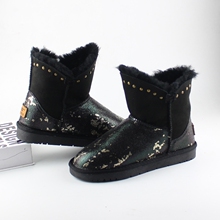 包邮2016新款CE变色亮片厚底5825雪地靴女中筒靴子棉鞋毛毛靴黑色