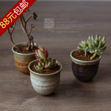 韩国手捏杯小多肉花盆手工粗陶瓷绿植物盆栽办公室育苗叶插桌面
