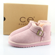 包邮澳大利亚超萌牛皮CE雪地靴侧扣男女雪地鞋牛筋底短靴钢标粉色