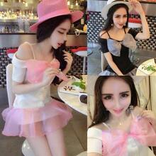夏季新款女装性感夜店可爱蝴蝶结欧根纱甜美公主吊带短袖连衣裙