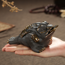 靳泓 金蟾蜍茶宠紫砂茶具茶宠摆件大号精品手工茶玩茶道配件可养