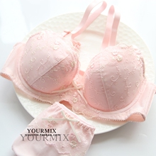 YOURMIX早春薄杯内衣蕾丝小碎花刺绣无海绵文胸套装大码80E85D85E