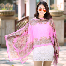 春夏新款韩版女士时尚印花柔软巴厘纱超大丝巾长款披巾