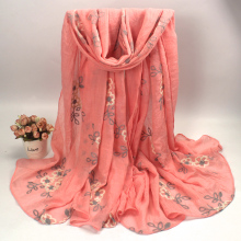 2016春秋韩国女士丝巾秋冬季长款女刺绣围脖保暖披肩棉麻围巾包邮