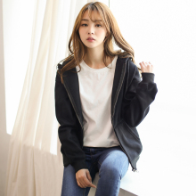 2017韩版春装女装新款连帽宽松长袖外套女纯色大码开衫拉链卫衣潮
