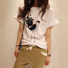 2017夏装圆领漏肩t恤女短袖韩版宽松老虎头印花性感露肩短款体恤