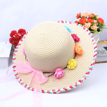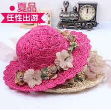 包邮小女孩夏季旅游海边沙滩帽子宝宝遮阳帽女童太阳花草帽大檐潮