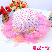 夏天儿童草帽女童夏季防晒沙滩海边度假遮阳帽蕾丝蝴蝶节网纱帽子