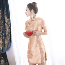 2017春夏季新款轻奢名媛风浅金色提花盘扣收腰显瘦旗袍百搭连衣裙